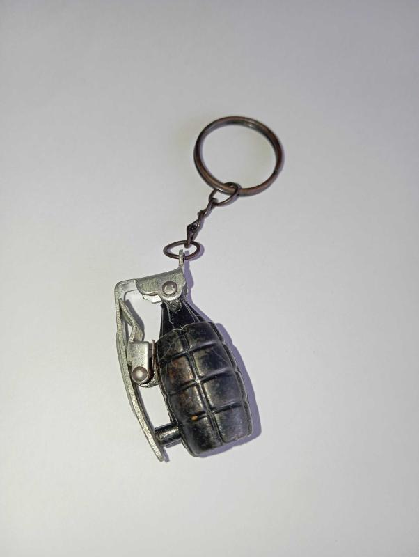 El bombası formunda anahtarlık. Bomba piminin oraya çatapat yerleştirip pim.kurulup atılıyor . Mantar.patlatiyor Çok iyi durumda Kullanilmamis
