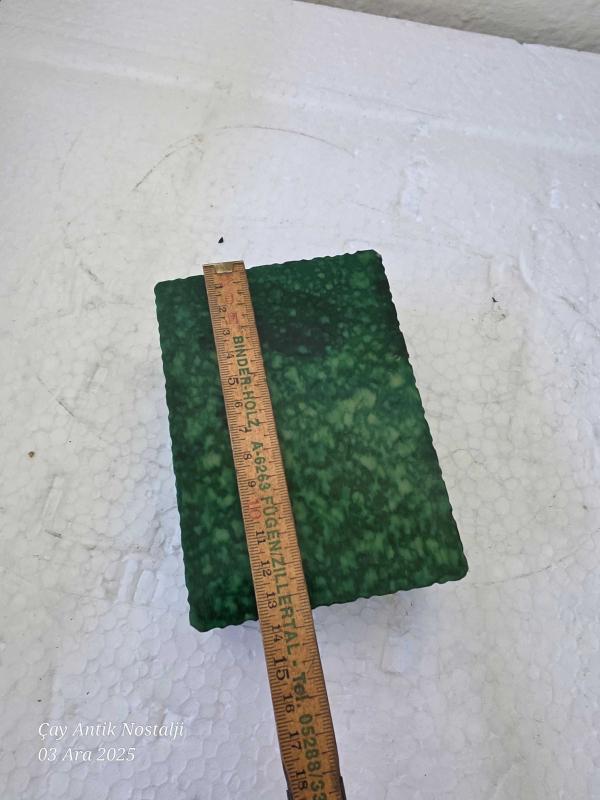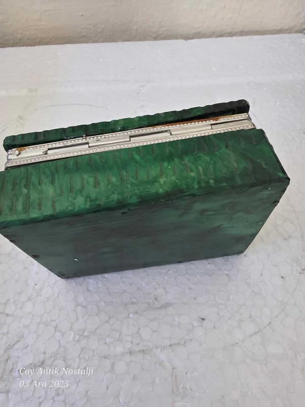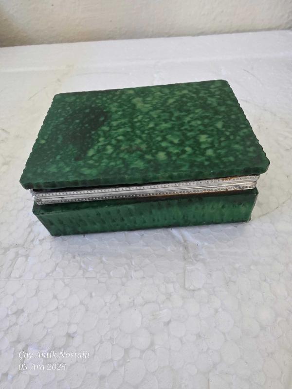 El boyama İtalyan Alabaster kutu koyu yeşil gümüş metal süslemeli mücevher kutusu vintage, 3 gün önce kitantik’te satışa sunulmuştur.