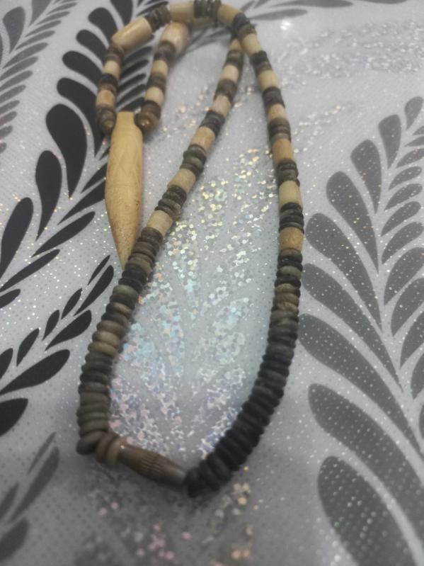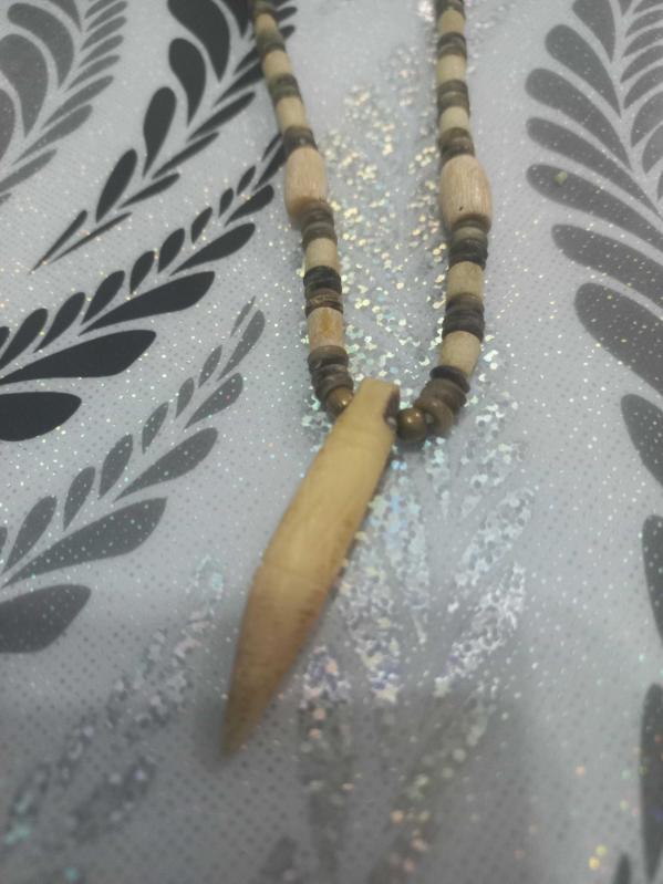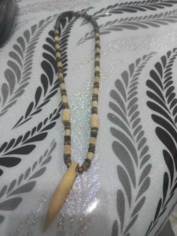El yapımı otantik kemik ( Deve kemiği ) kolye başlıklı antika/koleksiyon objesi Afrika menşe’lidir. 1950-1999 arası dönemine aittir.