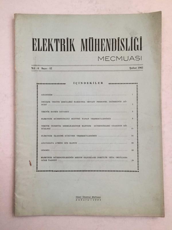 Elektrik Mühendisliği Mecmuası Yıl: 6 Sayı: 62 Şubat 1962, . tarafından kaleme alınmıştır. Kitap 1962 yılında Güzel İstanbul Matbaası tarafından [Ankara] yayınlanmıştır. 24 sayfadır. Elektrik Mühendisliği Mecmuası Yıl: 6 Sayı: 62 Şubat 1962 adlı eser Türkçe dilindedir.
