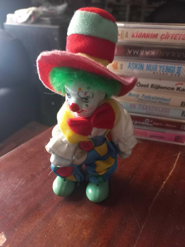Elleri ve ayakları oynar yüzü eli porselen tümüyle el yapımı palyaço, bir ay önce kitantik’te satışa sunulmuştur.