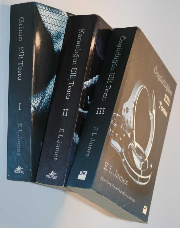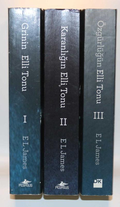 Grinin Elli Tonu / 1. Baskı / 2012 / 572 sayfa / Pegasus Yayınları Karanlığın Elli Tonu / 3. Baskı / 2013 / 634 sayfa / Pegasus Yayınları Özgürlüğün Elli Tonu / 1. Baskı / 2016 / 628 sayfa / Doğan Kitap