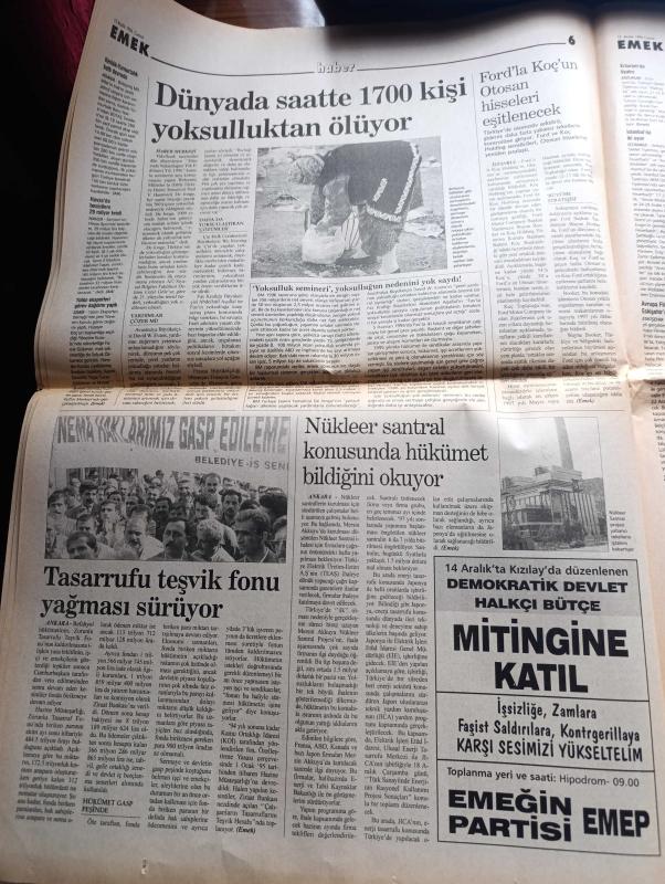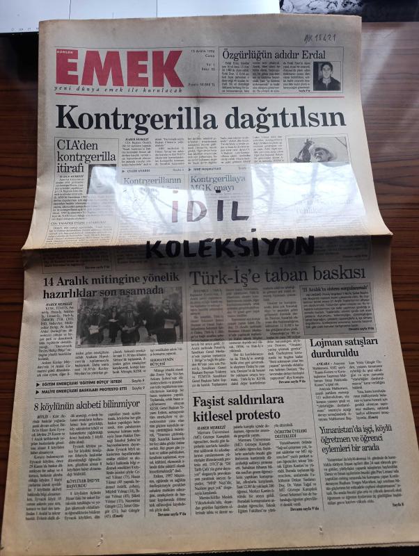 Emek Gazetesi - Turkish Newspaper - 13 Aralık 1996 - özgürlüğün adıdır Erdal Eren Fotoğrafı - kontgerilla dağıtılsın - CIA'den kontgerilla itirafı - 14 Aralık mitingine yönelik hazırlıklar son aşamada - Kürt illerinde baskılar yoğunlaşarak devam ediyor - Marmara üniversitesi'ndeki faşist saldırılara kitlesel protesto - Türk İş'e taban baskısı - kontgerillanın ağır topu Mehmet Ağar devlet gibiydi - televizyon ve Radyo programlarından seçmeler - bu yılbaşında bilet almayın - Marksizm sinemaya uyarlanınca - Deniz Gezmiş ve arkadaşları da idam edilmişlerdi Fotoğrafı - Susurluk kazasının ardından MHP gelişmelerden hoşnut değil - Efkan Şeşen ile Göçer oldum üzerine Fotoğrafı - dünyada saatte 1700 kişi yoksulluktan ölüyor - Katolik kilisesi geleneksel tavrını terk ediyor - Batı Şeria'da silahlı saldırı - Trabzonspor teknik direktörü Şenol Güneş yeni yönetime kolaylık sağlarım dedi - Galatasaray kulübü as başkanı Ergün Gürsoy en kısa zamanda iyi bir Türk kaleci transfer edeceğiz dedi, Halit Keskin tarafından kaleme alınmıştır. Emek Gazetesi - Turkish Newspaper - 13 Aralık 1996 - özgürlüğün adıdır Erdal Eren Fotoğrafı - kontgerilla dağıtılsın - CIA'den kontgerilla itirafı - 14 Aralık mitingine yönelik hazırlıklar son aşamada - Kürt illerinde baskılar yoğunlaşarak devam ediyor - Marmara üniversitesi'ndeki faşist saldırılara kitlesel protesto - Türk İş'e taban baskısı - kontgerillanın ağır topu Mehmet Ağar devlet gibiydi - televizyon ve Radyo programlarından seçmeler - bu yılbaşında bilet almayın - Marksizm sinemaya uyarlanınca - Deniz Gezmiş ve arkadaşları da idam edilmişlerdi Fotoğrafı - Susurluk kazasının ardından MHP gelişmelerden hoşnut değil - Efkan Şeşen ile Göçer oldum üzerine Fotoğrafı - dünyada saatte 1700 kişi yoksulluktan ölüyor - Katolik kilisesi geleneksel tavrını terk ediyor - Batı Şeria'da silahlı saldırı - Trabzonspor teknik direktörü Şenol Güneş yeni yönetime kolaylık sağlarım dedi - Galatasaray kulübü as başkanı Ergün Gürsoy en kısa zamanda iyi bir Türk kaleci transfer edeceğiz dedi adlı eser Türkçe dilindedir.