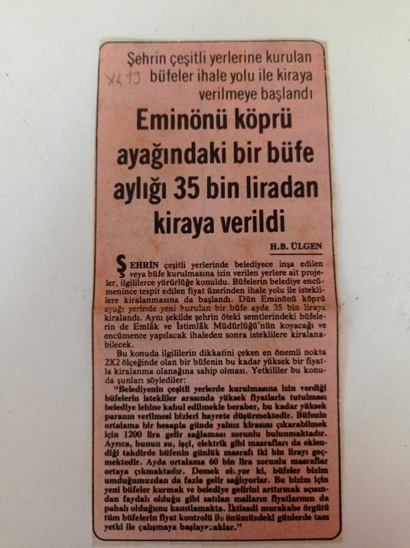 Eminönü Köprü Ayağındaki Bir Büfe Aylığı 35 Bin Liradan Kiraya Verildi - Emlak Ve İstimlak Müdürlüğü başlıklı ürün, Efemera, Müzik, Sinema > Diğer Efemera kategorisi altında İkinci El olarak satılmaktadır.