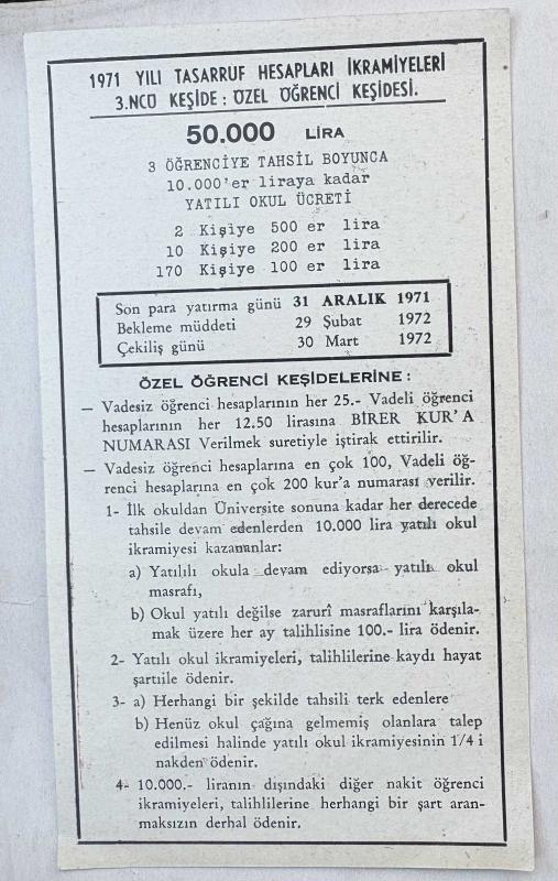 Emniyet Sandığı 1971 Yılı Tasarruf Hesapları İkramiyeleri 3. Keşide Özel Öğrenci Keşidesi, bir ay önce satışa sunulmuştur.