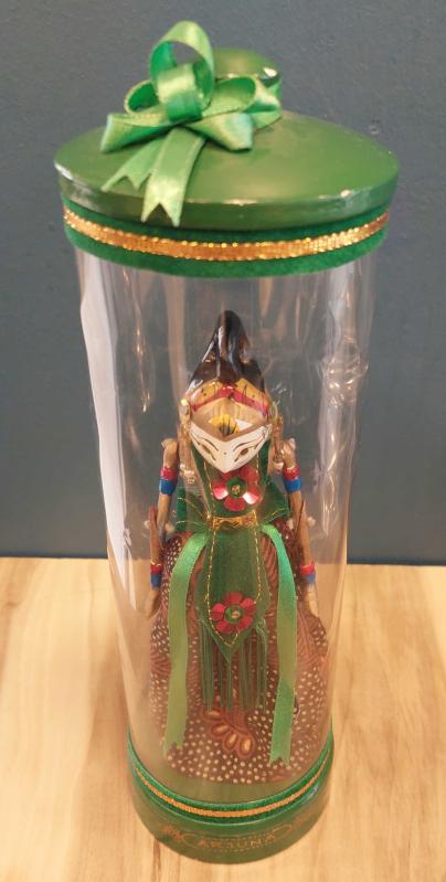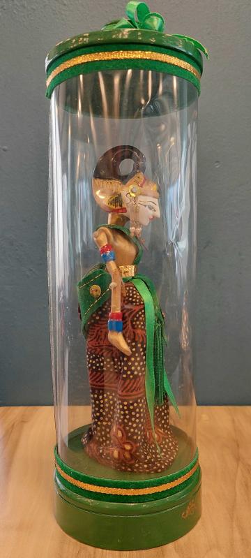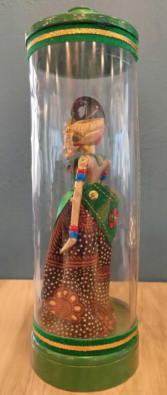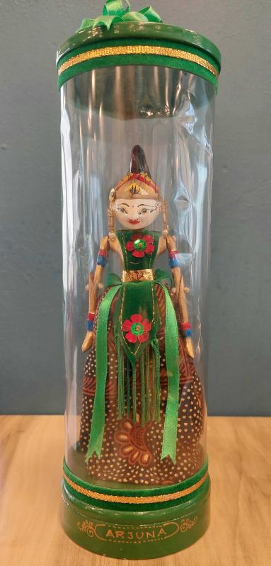 Endonezya, El Oyması ve Boyalı Ahşap Wayang Golek "Arjuna" Adlı Kukla. "Arjuna, Hint Mitolojisinde Dünya Üzerindeki En Büyük Savaşçı, Epik Hindu Destanı Mahabharata'nın Beş Kahramanından ve Dvapara Çağının En Önemli Figürlerinden Biridir." Sevgiyle ve İnce Detaylarla El Yapımı Olan Bu Ahşap Bali Kuklası Gerçek Bir Başyapıt. Geleneksel Tasarımı ve İşçiliğiyle Endonezya Kültürünü Temsil Ediyor. Kısaca; "Arjuna" Karakteri Gösterilerde Yavaş Hareket Eden Bir Kukladır. Koleksiyonlarına Benzersiz Parçalar Eklemek İsteyen Koleksiyoncular İçin Mükemmel Bir Üründür. Eşsiz Kıyafeti ve Rengarenk Özel Tasarımıyla El Yapımı Kukla. Orijinal Kutusunda ve Çok İyi Durumda. (Açılmamıştır.) 1940'lar. (Kukla:16x6 cm/Kutu:8x25 cm)