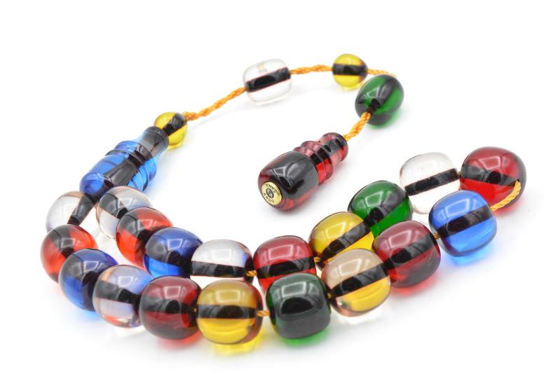 Enes Abdo İmzalı Fıçı Kesim Rengarenk Sıkma Kehribar Efe Maskot Tesbih başlıklı antika/koleksiyon objesi Türkiye menşe’lidir. 2000 ve sonrası dönemine aittir.