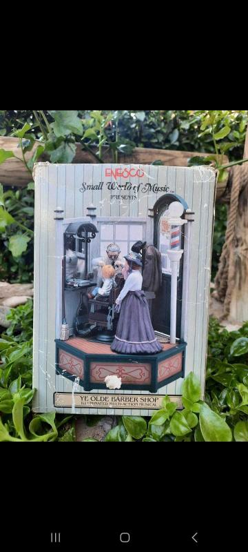 Orjinal ambalajında, kurmalı ve hareketli berber dukkani temali müzik kutusu.