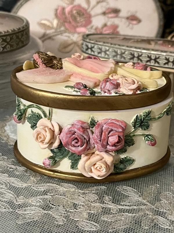Enesco Peri Figürlü Dekoratif Kutu Pembe tonlarda, simli kanatlı peri figürü ve kabartma gül detaylarıyla romantik bir tasarım. Enesco üretimi, koleksiyonluk ve zarif bir parça. Takı veya küçük hatıralar için ideal.