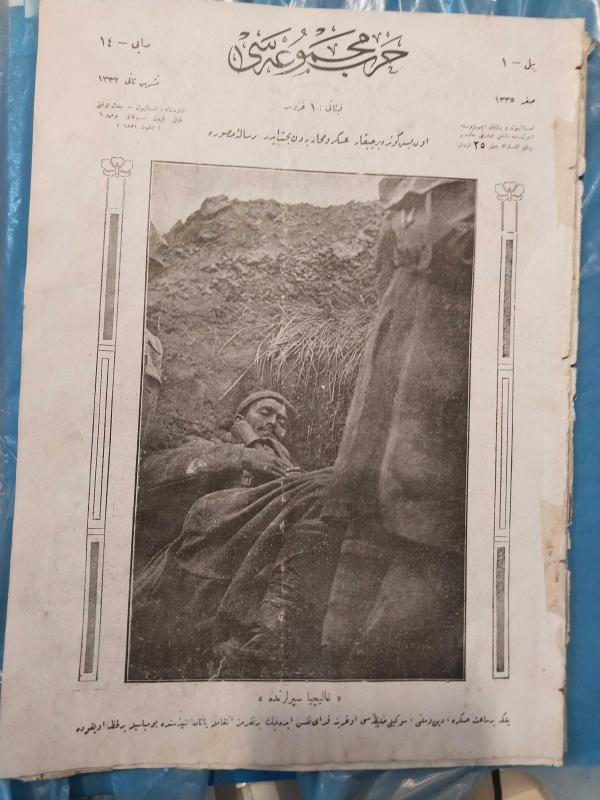 Enver Paşa Galiçya Cephesi Harp Mecmuası Galiçya Cephesi Siper de El Bombası ile uyuyan Asker Görselli.Harp Mecmuası Yıl : 1. Sayı : Kasım 1916 Cepheden Pek çok fotoğraf ve Enver Paşa Fotoğraflı. adlı eser, Kitap > Süreli Yayınlar > Dergiler > Tarih kategorisinde İkinci El olarak satıştadır.