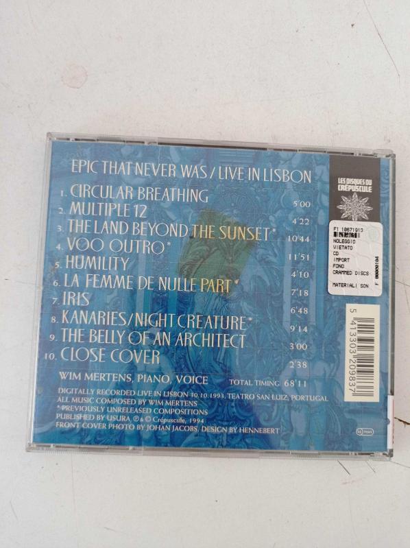 Epic That Never Was Wim Mertens'in müzik albümü CD ORJİNAL MÜZİK CD ( CD 6285, 3 yıl önce satışa sunulmuştur.
