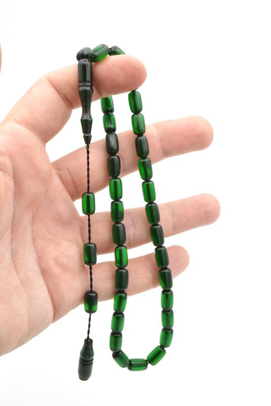 Renk: Yeşil USTA İŞİ İMZALI ATEŞ KEHRİBAR TESBİH USTA İŞİ TAKIMLI SİSTEMLİ GÜNLÜK ÇEKİME UYGUNDUR TANE EBADI: 6.5*11 MM İMAME BOY: 3.6 CM TOPLAM BOY: 36 CM Ürünlerimiz doğal olduğu için renk tonlarında küçük farklılıklar olabilir.