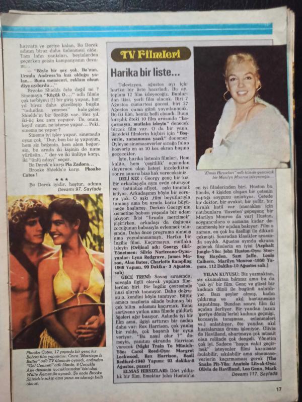 Erkekçe Dergisi- Ağustos 1982- Deniz Akbulut- Şevket Yılmaz- Atilla İlhan- Emin Coşar- Prenses Anne- Jacqueline Bisset- Faye Dunaway- Nazan