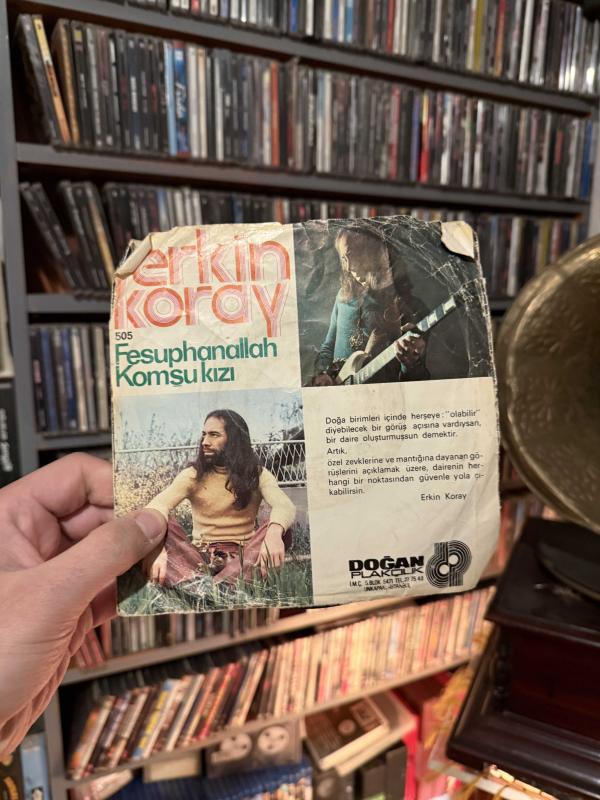 🎵 Erkin Koray – Fesuphanallah / Komşu Kızı Yerli 45’lik plak, orijinal baskı. Anadolu Rock’ın efsane ismi Erkin Baba’dan, kuşakları birleştiren, doğu-batı sentezinin zirve yaptığı ölümsüz eser. 📀 Durum: İyi 🎶 Dinlemelik & koleksiyonluk