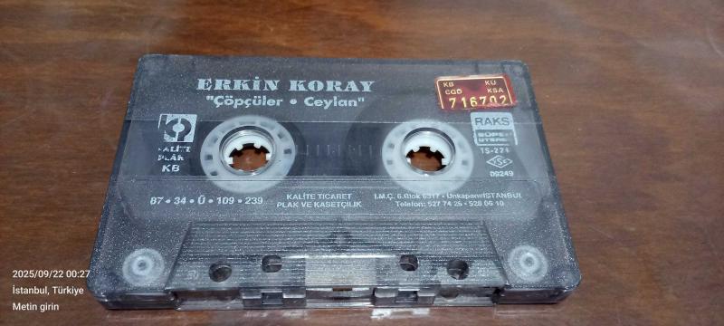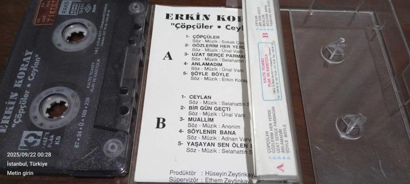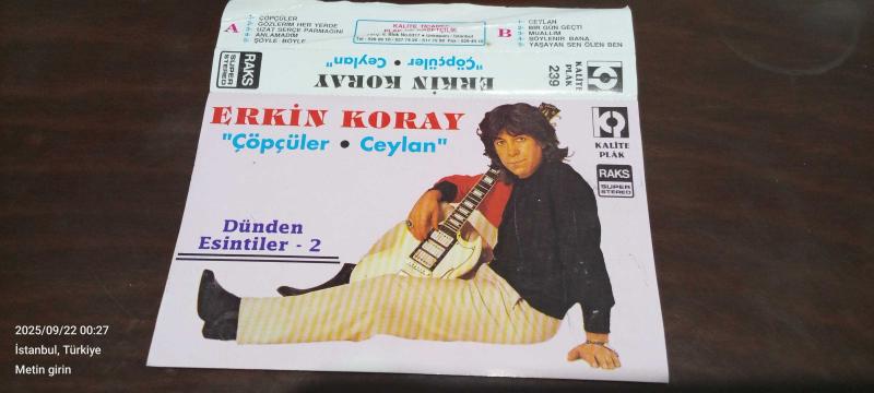 Erkin Koray, dünden esintiler/2 çöpçüler, ceylan başlıklı ürün, Efemera, Müzik, Sinema > Müzik, Plak, Kaset, CD > Müzik Kaseti > Yerli Müzik Kaseti kategorisi altında İkinci El olarak satılmaktadır.