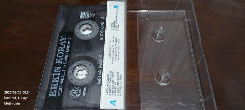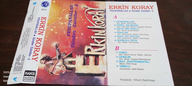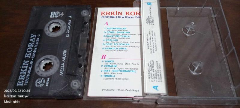 Erkin Koray, dünden esintiler/3 Fesupanallah başlıklı ürün, Efemera, Müzik, Sinema > Müzik, Plak, Kaset, CD > Müzik Kaseti > Yerli Müzik Kaseti kategorisi altında İkinci El olarak satılmaktadır.