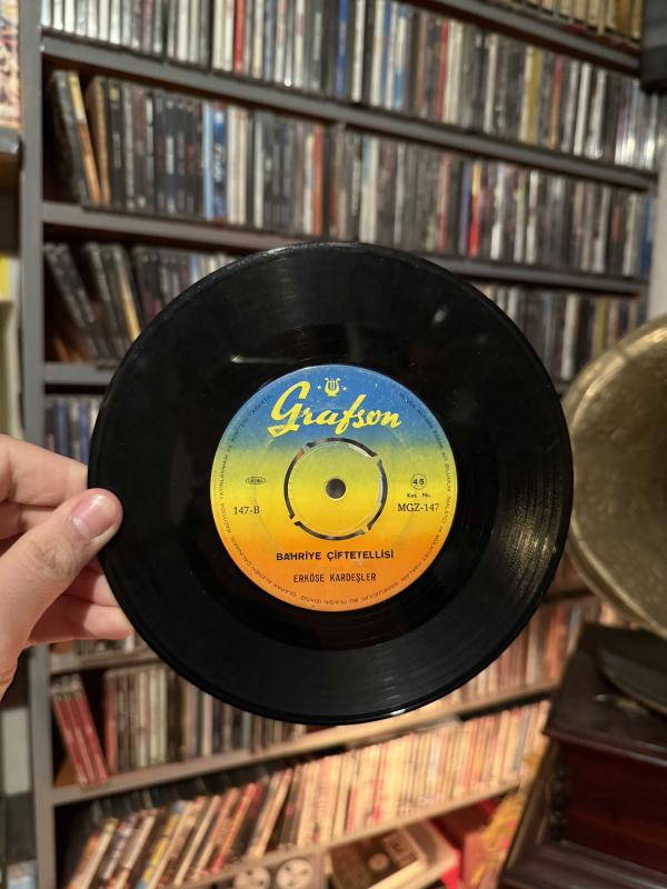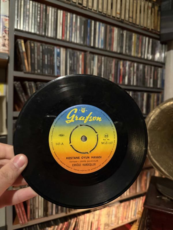 🎵 Erköse Kardeşler – Kestane Oyun Havası / Bahriye Çiftetellisi Yerli 45’lik plak, orijinal baskı. Klarnet ve kanunun üstatlarından, geleneksel ritimlerin en rafine ve coşkulu haliyle icra edildiği, oyun havası kültürünün zirve plaklarından. 📀 Durum: İyi 🎶 Dinlemelik & koleksiyonluk