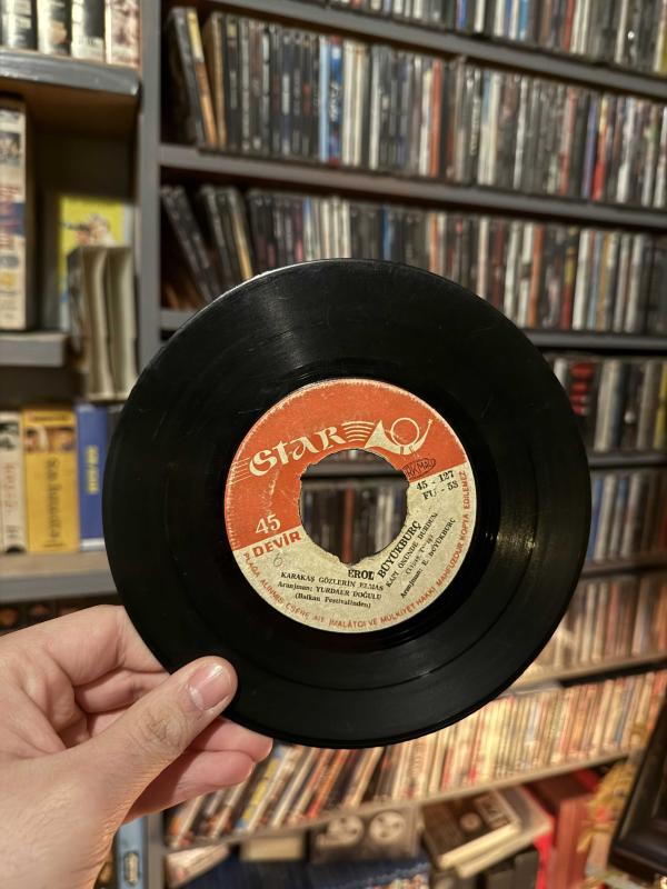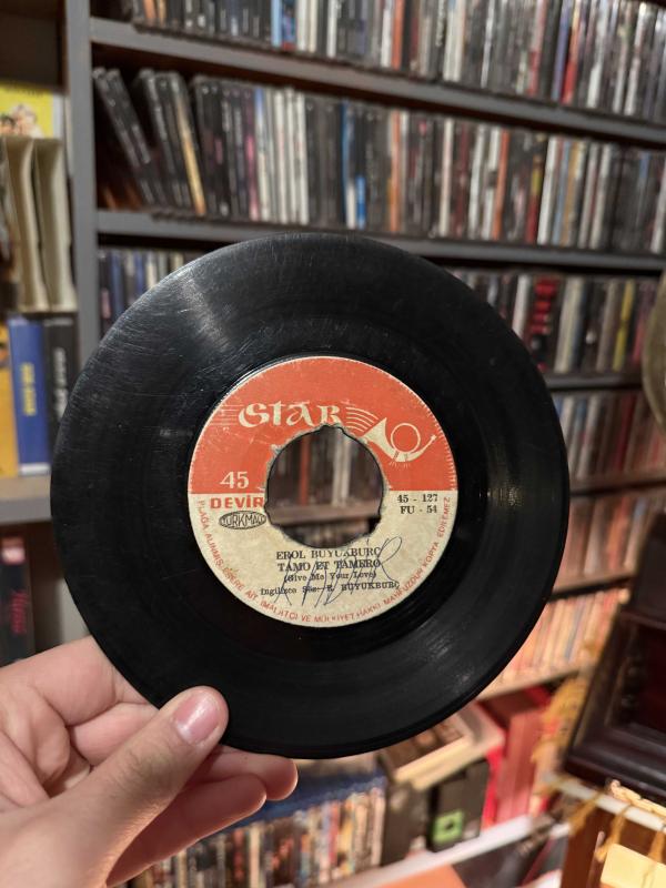 🎵 Erol Büyükburç – Karakaş Gözlerin Elmas - Kapı Önünde Durdum / Tamo Et Tamero (Give Me Your Love) Yerli 45’lik plak, orijinal baskı. A yüzünde Anadolu’nun samimi türkülerini, B yüzünde ise Batılı ve modern yorumunu sergileyen, Büyükburç’un müzikal dehasını özetleyen bir plak. 📀 Durum: İyi 🎶 Dinlemelik & koleksiyonluk