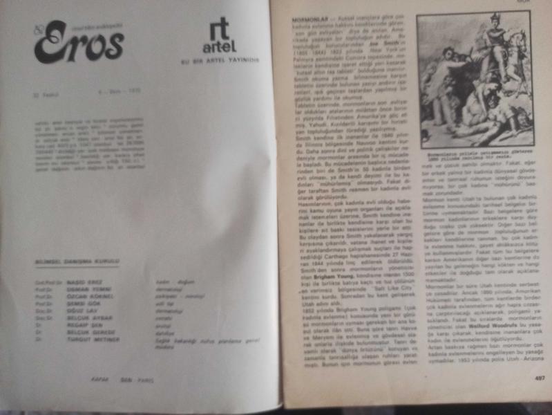 Eros Cinsel Bilim Ansiklopedisi Dergisi - Sayı:32 - 13 Ekim 1970 - Mormonlar - Brigham Young - Welford Woodrufs - Mort Douce - Moulin Rouge - Jan Avril - Muhabbet Tellalı - Mum Fahişeleri - Mum Söndü - Muska - Bir Japon Minyatürü - Mutasyon - Müstehcen - Müzik ve Cinsellik - Eski Bir Fransız Dansı - Müzikhol - Müzikli Süs Eşyaları - Narkotikler ve Cinsel Yaşam - Esrar İçen Genç Kız - Narsiz - Narsizm - Naturalizm - Nekrofiliya - Aynadaki Sevgili - Nekrosadistlik - Nekrospermi - Nemfomani - Nemfoman Kadın Cinsel Doyuruya Kavuşamaz - Nemfotoni - Nemfler - Neron fotoğraf ve haberi - Tam Takım Dergi, Ercan Arıklı tarafından kaleme alınmıştır. Kitap 1970 yılında Artel Neşriyat ve Ticaret tarafından [İstanbul] yayınlanmıştır. 20 sayfadır. Eros Cinsel Bilim Ansiklopedisi Dergisi - Sayı:32 - 13 Ekim 1970 - Mormonlar - Brigham Young - Welford Woodrufs - Mort Douce - Moulin Rouge - Jan Avril - Muhabbet Tellalı - Mum Fahişeleri - Mum Söndü - Muska - Bir Japon Minyatürü - Mutasyon - Müstehcen - Müzik ve Cinsellik - Eski Bir Fransız Dansı - Müzikhol - Müzikli Süs Eşyaları - Narkotikler ve Cinsel Yaşam - Esrar İçen Genç Kız - Narsiz - Narsizm - Naturalizm - Nekrofiliya - Aynadaki Sevgili - Nekrosadistlik - Nekrospermi - Nemfomani - Nemfoman Kadın Cinsel Doyuruya Kavuşamaz - Nemfotoni - Nemfler - Neron fotoğraf ve haberi - Tam Takım Dergi adlı eser Türkçe dilindedir.