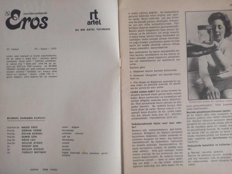Eros Cinsel Bilim Ansiklopedisi Dergisi - Sayı:37 - 17 Kasım 1970 - Limbik Sistem Nedir? - Psikofarmakolojik İlaçlar Nasıl Tesir Ederler? - Afektif ve Kognitiv - Psikohijyen - Psikoloji - Psiko Nevroz - Psikopatoloji - Psikosomatik - Psikoz - Psişik - Psödopuberte - Pubis - Pubis Kemiği - Pubendus - Pulculuk ve Cinsellik - Püritarizm - Peter Gowland - Rahim - Rahim Biyopsisi - Rahim Büküklüğü ve Dönüklüğü - Rahim Düşüklüğü - Rahim Gelişmesi - Rahim İltihabı - Rahim Parçalanması Ya da Delinmesi - Rahim Urları - Randevu Evi - Ratira Hasya - Refleks - Refleks Yayı - Regl Rektum - Regl - Rektum - Reich Wilhelm - Renk Erotiği - Restif de la Bretonne - Reprodüksiyon fotoğraf ve haberi - Tam Takım Dergi Yıpranma, sararmalar, kupon kesiği ve yırtılmalar zamana bağlı olarak görülebilir
