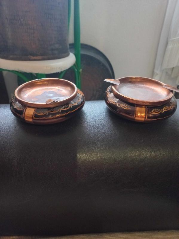 Erzincan işi kalem işçilik Bakır Küllük iki adet başlıklı antika/koleksiyon objesi Türkiye menşe’lidir. 1950-1999 arası dönemine aittir.