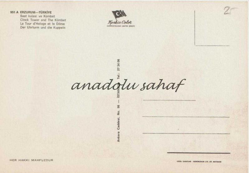 Erzurum Saat Kulesi ve Kümbet - Keskin Color Kartpostalları