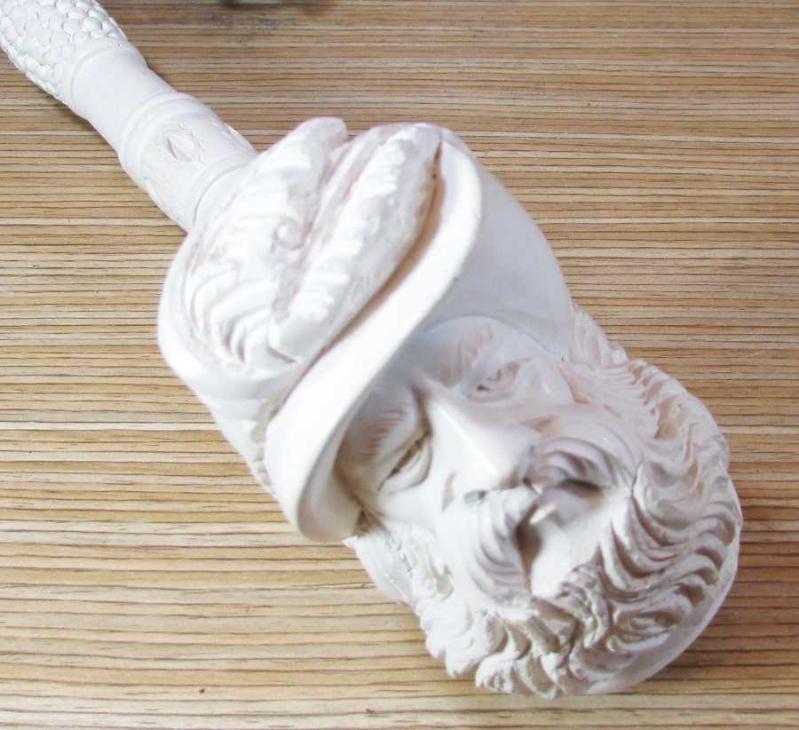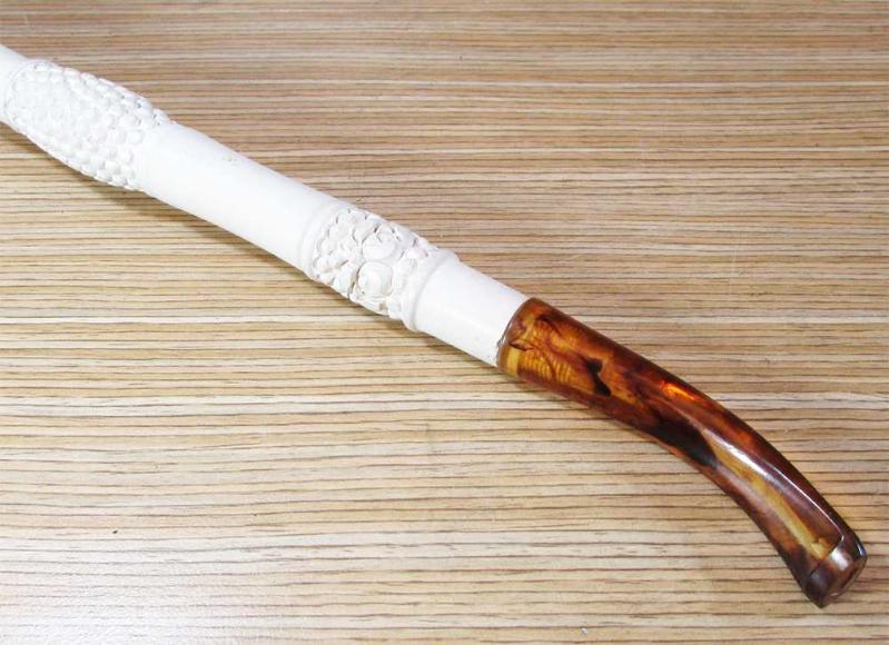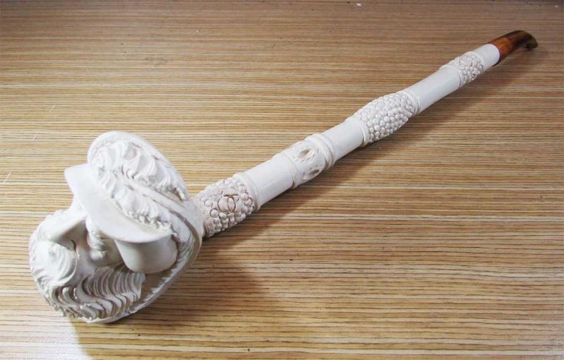 ESKİLERDEN LÜLE TAŞINDAN OYMA SANATLI HEYKEL BAŞLI, EMZİK KISMI KATALİN VEYA BENZERİ MALZEMELİ GÜZEL BİR KOLEKSİYONLUK PİPO, SANIRIM HİÇ KULLANILMAMIŞ,TERTEMİZ, DETAYLARI ÜRÜN RESİMLERİNDE, UZUNLUĞU 40cm