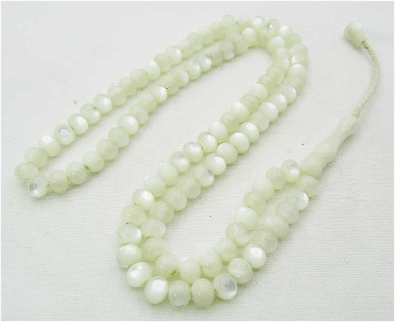 ESKİLERDEN KALMA, HAKİKİ DOĞAL SEDEF TAŞI 99 LUK TESBİH, BASIK KÜRE HABBELİ, SAĞLAM VE TEMİZ DURUMDA BU İŞİ İYİ BİLENLER ZATEN ANLAR, HABBE ÖLÇÜLERİ 5,5x7mmI İMAME UCU UZUNLUĞU 33cm