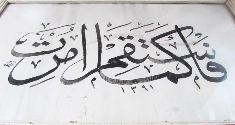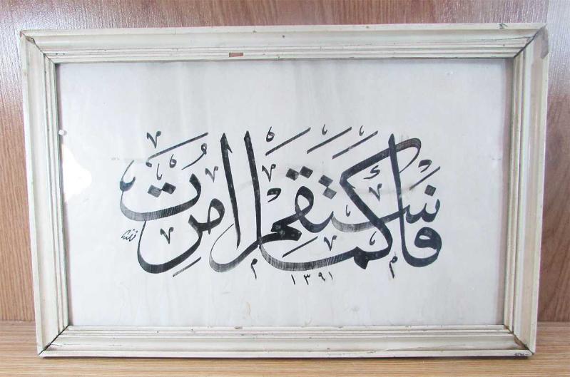 ORJİNAL EL ÇEKME, KETEBELİ,1391(1975) TARİHLİ, DÖNEMİNE AİT AHŞAP ÇERÇEVELİ CAMLI GÜZEL BİR HÜSN-Ü HAT LEVHA, "Emrolunduğun Gibi Dosdoğru Ol" MEALİNDE, HUD SURESİ 112.AYET YAZILIDIR, SAĞLAM VE TEMİZ DURUMDA, ÇERÇEVE ÖLÇÜSÜ 24cmx37cm