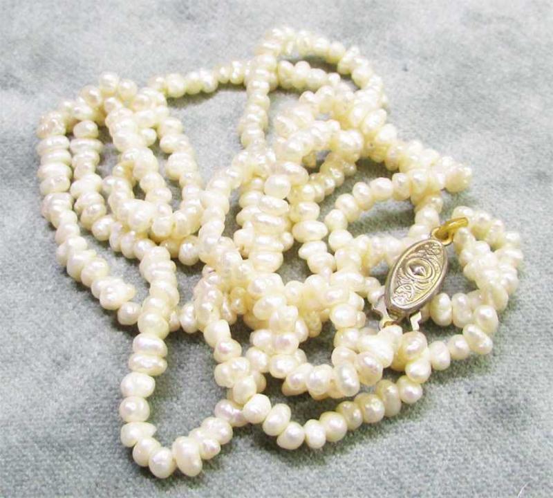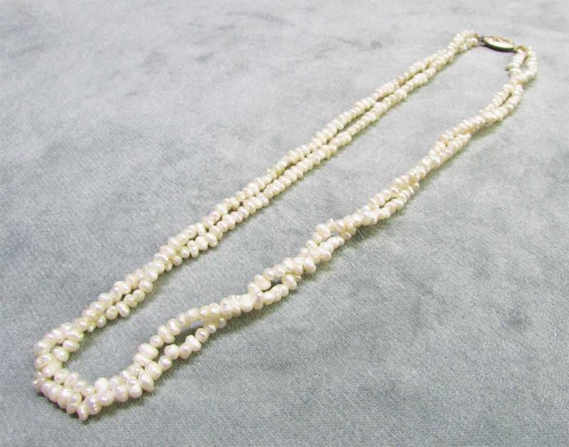 ESKİLERDEN ÇOK GÜZEL VE 2 DİZİLİ,PİRİNÇ KLİPSLİ, HAKİKİ İRİCE DENİZ KUM İNCİSİ GERDANLIK, SAĞLAM VE TERTEMİZ, AĞIRLIĞI 17,5gr GERDANLIK UZUNLUĞU 42cm
