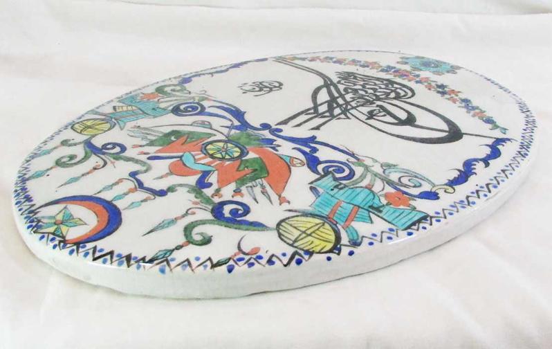 BİR KÜTAHYALI KALİTELİ SERAMİK ÇİNİ USTASITARAFINDAN, TAMAMEN EL İŞÇİLİĞİ İLE GEÇMİŞTE YAPILMIŞ OSMANLI DEVLET ARMASI VE TUĞRALI HARİKAÇİNİ PANO BİLDİĞİM KADARI TEK VE NADİR BİR ÜRÜN SAĞLAM VE TEMİZ DETAYLARI ÜRÜN RESİMLERİNDEDİR KALINLIĞI 1,5cm CİVARI,GENİŞLİĞİ 26cm YÜKSEKLİĞİ 35,5cm