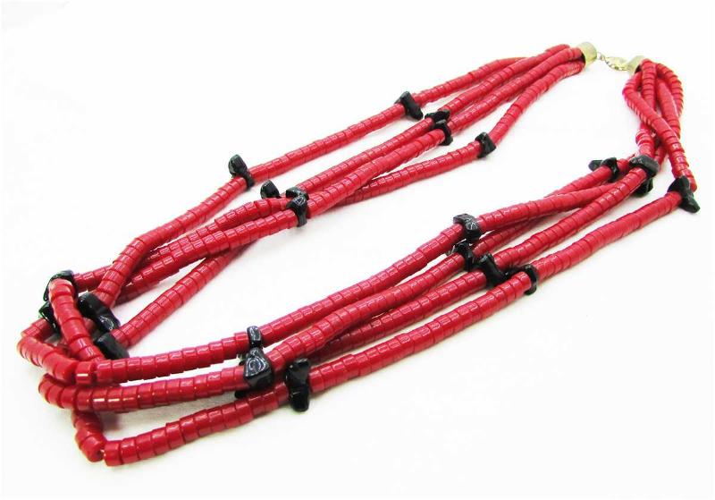 ESKİLERDEN, ASYA KÖKENLİ 4 DİZİLİ KOLYE-GERDANLIK, TANELER SERT SIKMA PLASTİK TARZI YAPILI,KALINLIĞI 6mm, ARALARDAKİ SİYAHLARIN MATERYALLERİ FARKLI, BAĞLANTILARI PİRİNÇ, GENEL OLARAK SAĞLAM VE TEMİZ, DİZİ UZUNLUKLARI ORTALAMA 65cm