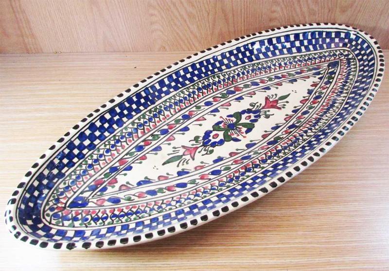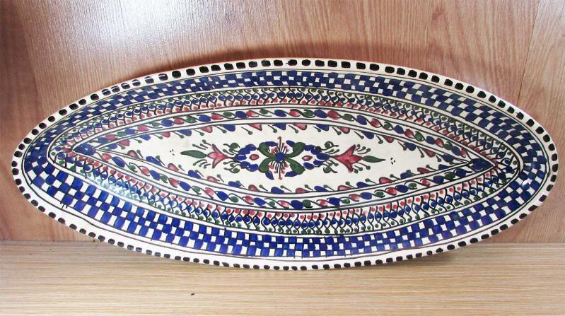 EsKi TUNUS İşİ ÇİNİ SERAMİK UzUn KAYIK TABAK.......52cm başlıklı antika/koleksiyon objesi Afrika menşe’lidir. 1940 sonrası dönemine aittir.
