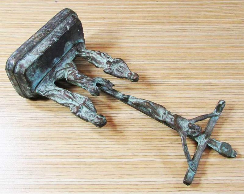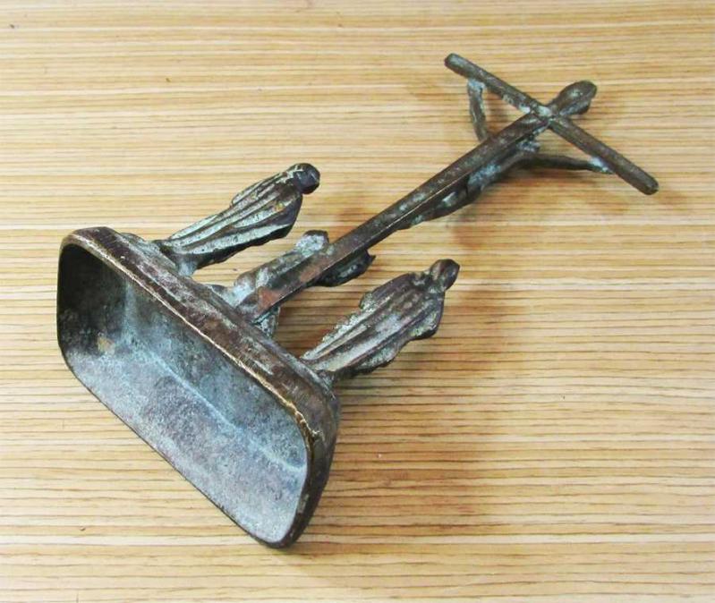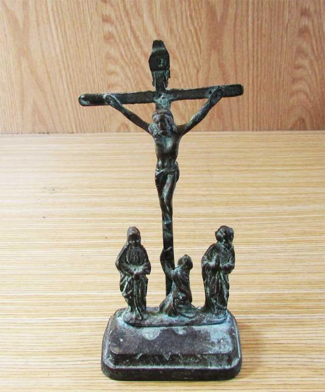 YAKIN DÖNEM ÜRÜN, ESKİTME PİRİNÇ YA DA BRONZ İKONA, SAĞLAM VE İYİ KONDÜSYONDA, TABAN GENİŞLİĞİ 4,5cm,UZUNLUĞU 8cm,YÜKSEKLİĞİ 17,5cm