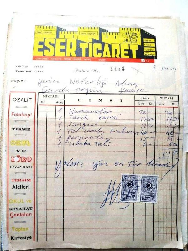 Eser Ticaret - Kırtasiye KAYSERİ / Fatura - Efemera, en son 2 yıl önce güncellenmiştir.