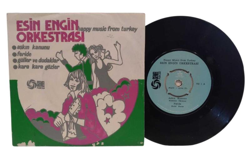 Esin Engin Orkestrası Happy Music From Turkey E.P. Şenel Plakçılık (1) Plak - Kapak Kondisyonu 10/8 A- Aşkın Kanunu / Feride B- Güller ve Dudaklar / Kara Kara Gözler