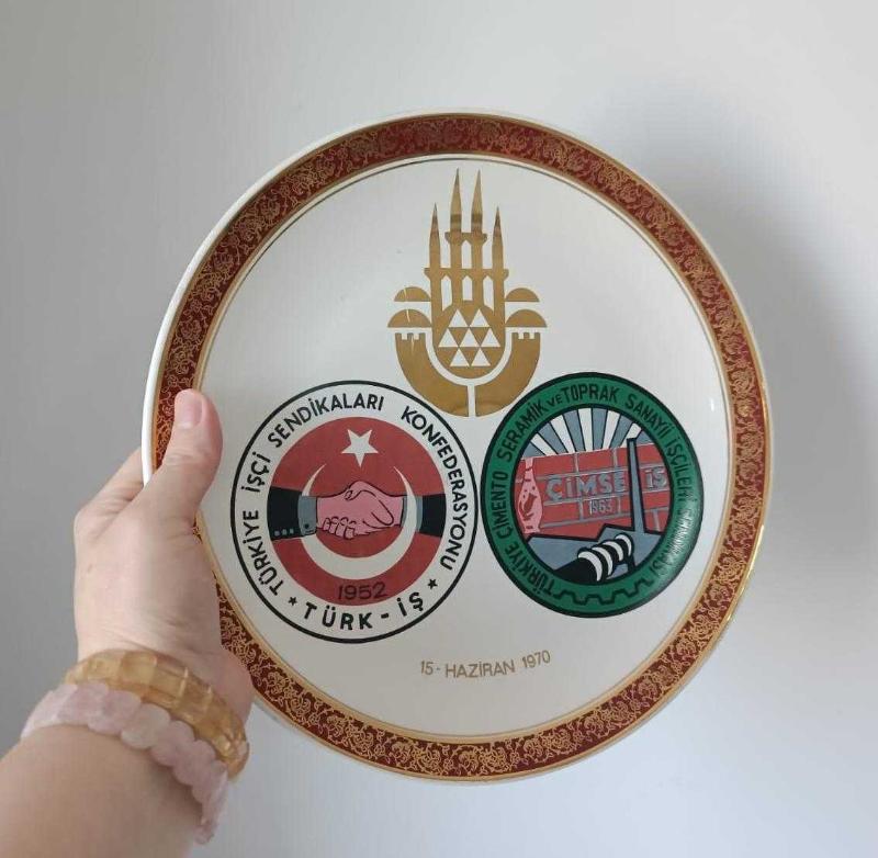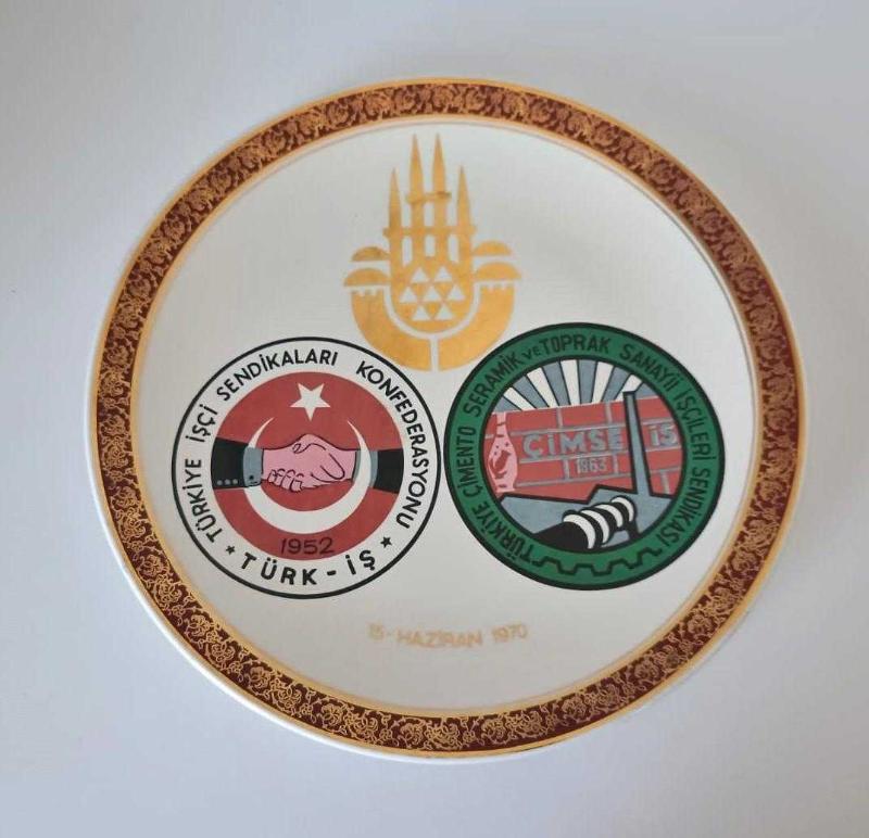 Eski 1970 Türk İşçi Sendikaları Konfederasyonu Sümerbank Yıldız Porselen Tabak, bir ay önce kitantik’te satışa sunulmuştur.