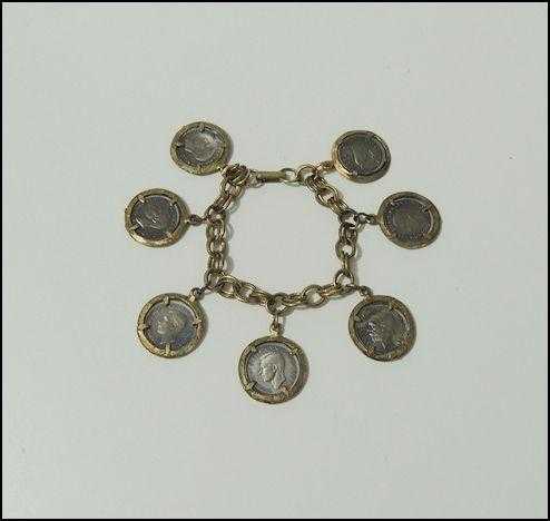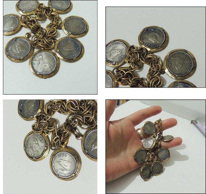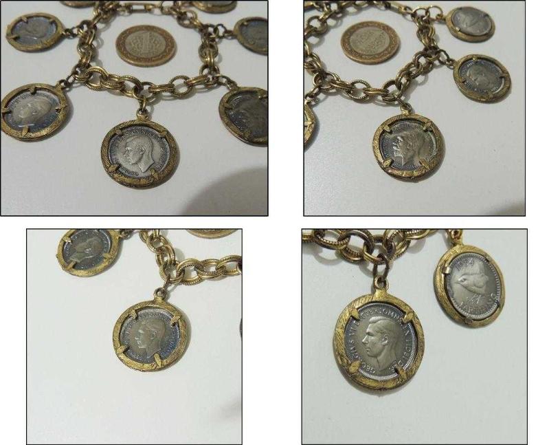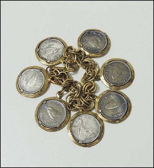 Eski Altın Rengi Bilezik 7 Adet Büyük Britanya Farthing Madeni Paralarıyla başlıklı antika/koleksiyon objesinin menşei belirtilmemiştir. Objenin ait olduğu dönem bilinmeketedir.