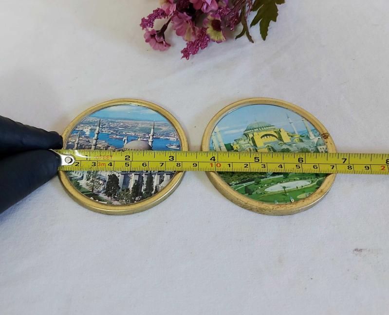 Eski Aya Sofya ve Süleymaniye Cami Mini Tabak - Dekor - Bardak Altı - İstanbul Temalı Hediyelik - 2 Adet başlıklı antika/koleksiyon objesinin menşei belirtilmemiştir. Objenin ait olduğu dönem bilinmeketedir.