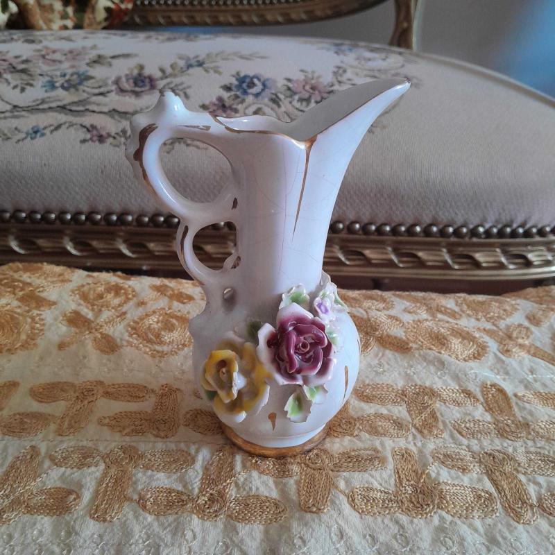 Üzerinde kapitemonte çiçeleri olan vazo seramik ve antika değeri vardır.Ürün ikinci el olup hatasızdır