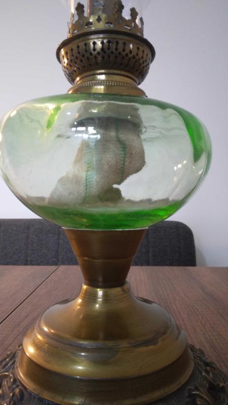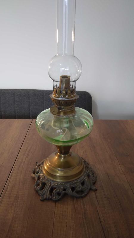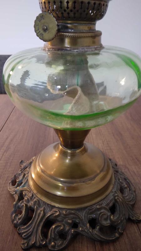 Eski Fransız Bronz kaideli Özel Uranyum cam hazneli çok şık dekoratif ve istenildiğinde kullanılabilir Gaz Lambası. Alıcısına hayırlı olsun.