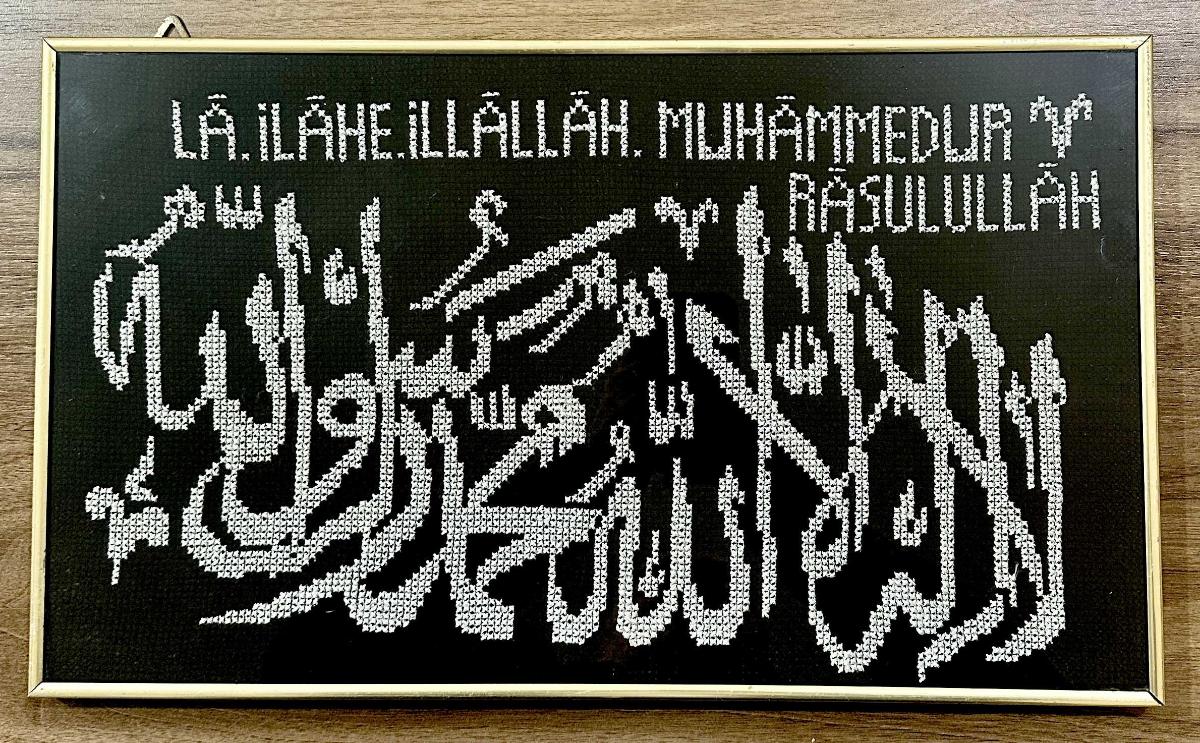 Eski Kumaş üzeri Kelimei Tevhid yazılı çerçeveli tabela 29 x 45 cm, en son 6 saat önce güncellenmiştir.