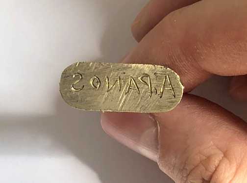 Eski Pirinç Metal Mühür "A.PANOS" Yazılı. Fotoğraftaki ürün gönderilecektir.
