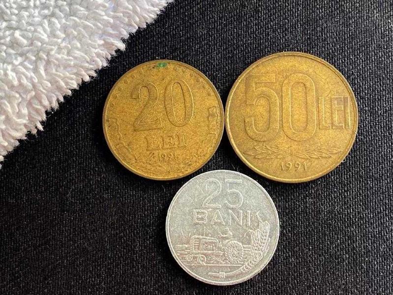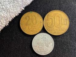 Bu set, toplamda 3 adet eski Romanya madeni para içermektedir: 1 adet 20 Lei (1991) 1 adet 50 Lei (1991) 1 adet 25 Bani (1982) Paralar, fotoğraflarda görüldüğü gibi iyi durumdadır.