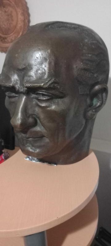 Eski bronz ATATÜRK büstü büyük hoy ölçü resimde mevcut ağırlık 14 kg sağlam ve temizdir