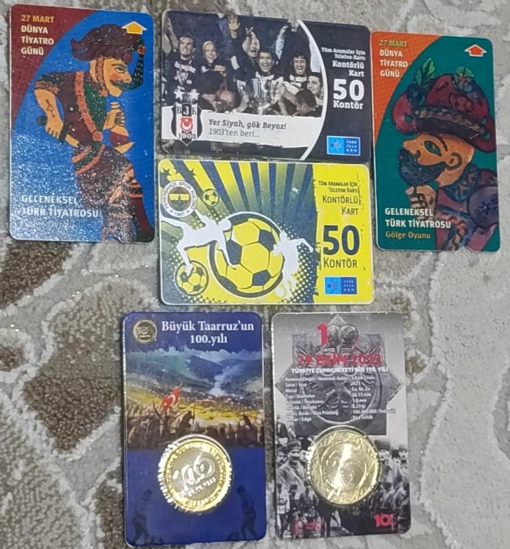 Eski telefon kartları tiyatro Beşiktaş Fenerbahçe vb. Madeni hatıra para lar paketli sıfır koleksiyon nostalji tasarım dekor hediye vintage retro hobi reklam promosyon