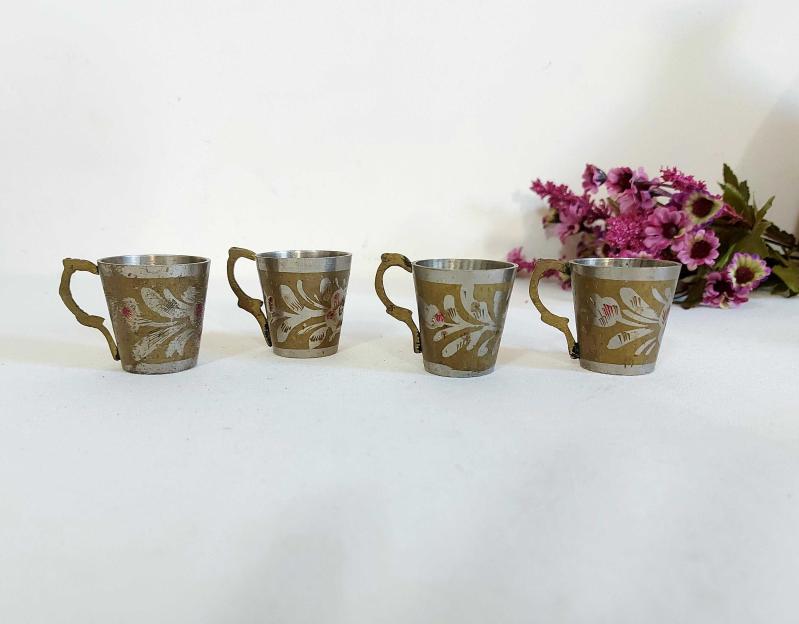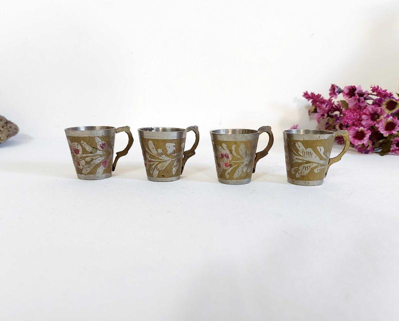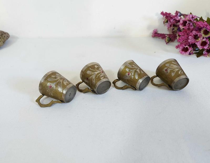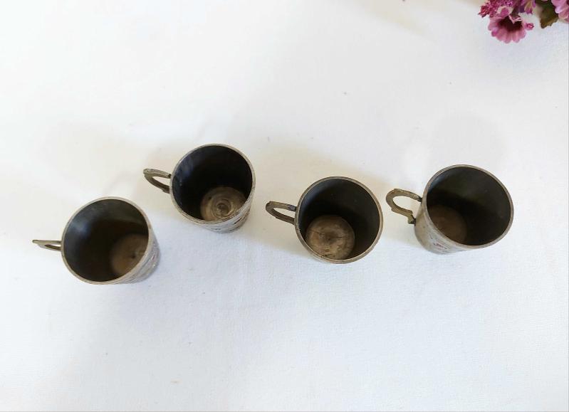 4 Adet eski metal Fincanlar Küçük Boy Eski - Sağlam - Temiz