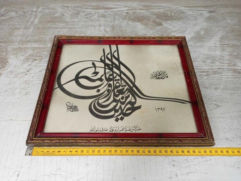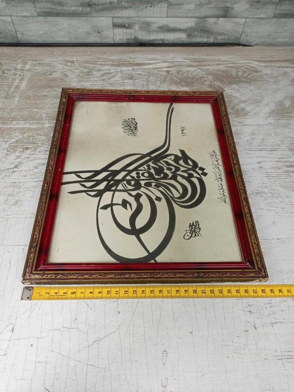 Eskilerden Ahşap Çerçeveli Osmanlı Tuğralı Tablo başlıklı antika/koleksiyon objesi Türkiye menşe’lidir. 1950-1999 arası dönemine aittir.