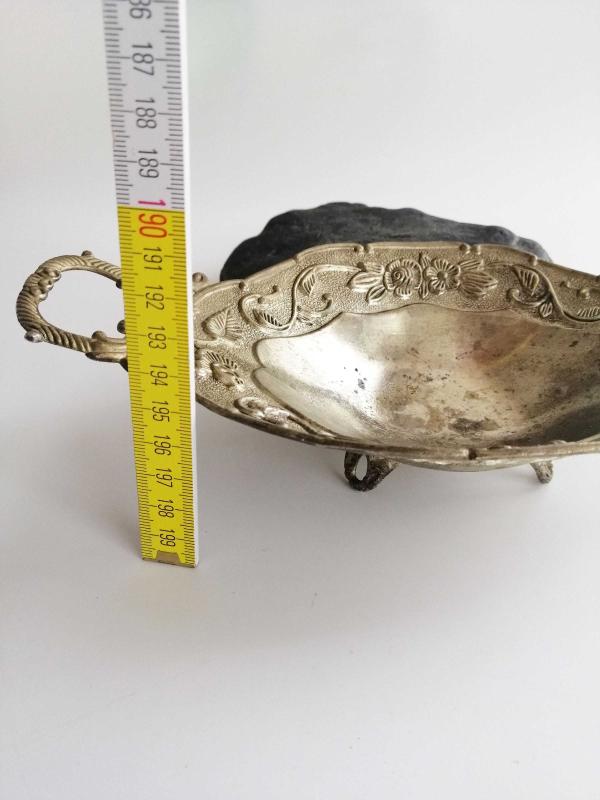 Eskilerden Alman Gümüşü Çiçek Kabartmalı Metal Tabak - Şekerlik - Meyvelik no 2 başlıklı antika/koleksiyon objesinin menşei belirtilmemiştir. Objenin ait olduğu dönem bilinmeketedir.