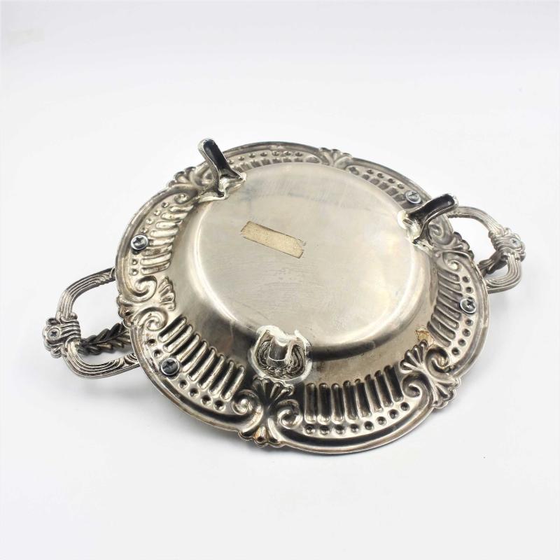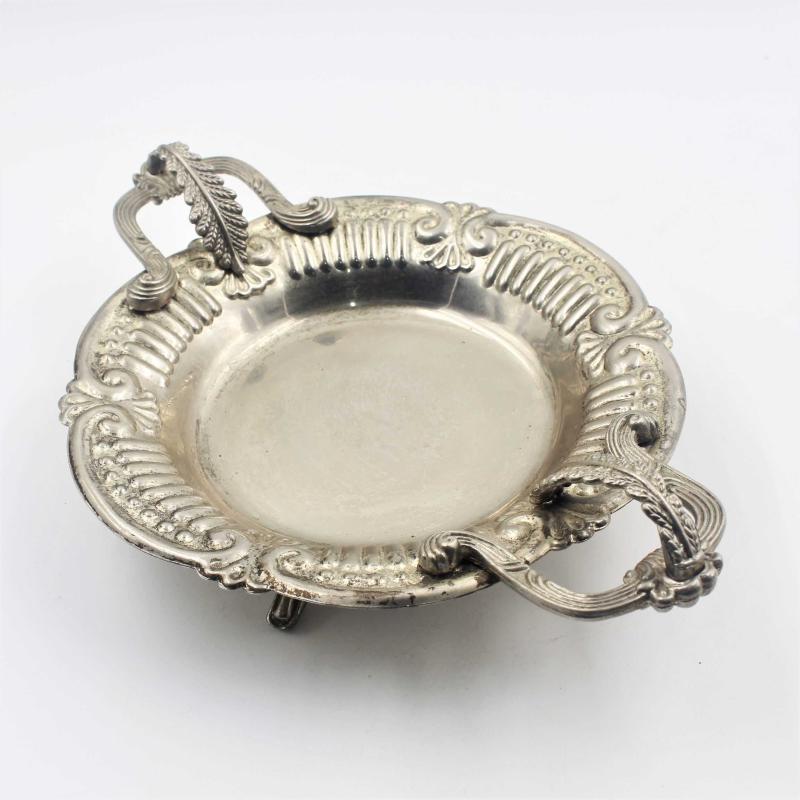 Eskilerden Alman Gümüşü Çiçek Kabartmalı Metal Tabak - Şekerlik - yuvarlak Meyvelik başlıklı antika/koleksiyon objesinin menşei belirtilmemiştir. Objenin ait olduğu dönem bilinmeketedir.